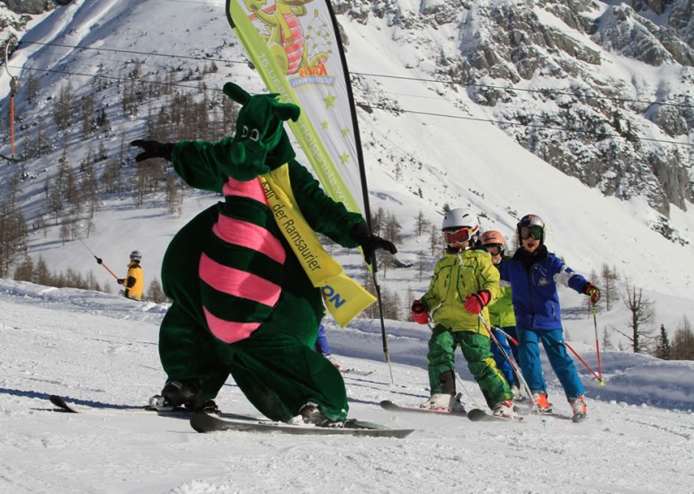 In Ramsau gibt es den Kinderklettersteig Kali sowie die beiden Jugendklettersteige Kala, Kalo und Heidi. Richtige Klettersteige, die am Seil über Felsen und Kuppen bis zum Ziel führen: dem Gipfelkreuz mit traumhafter Aussicht auf das Ramsaurierland.
